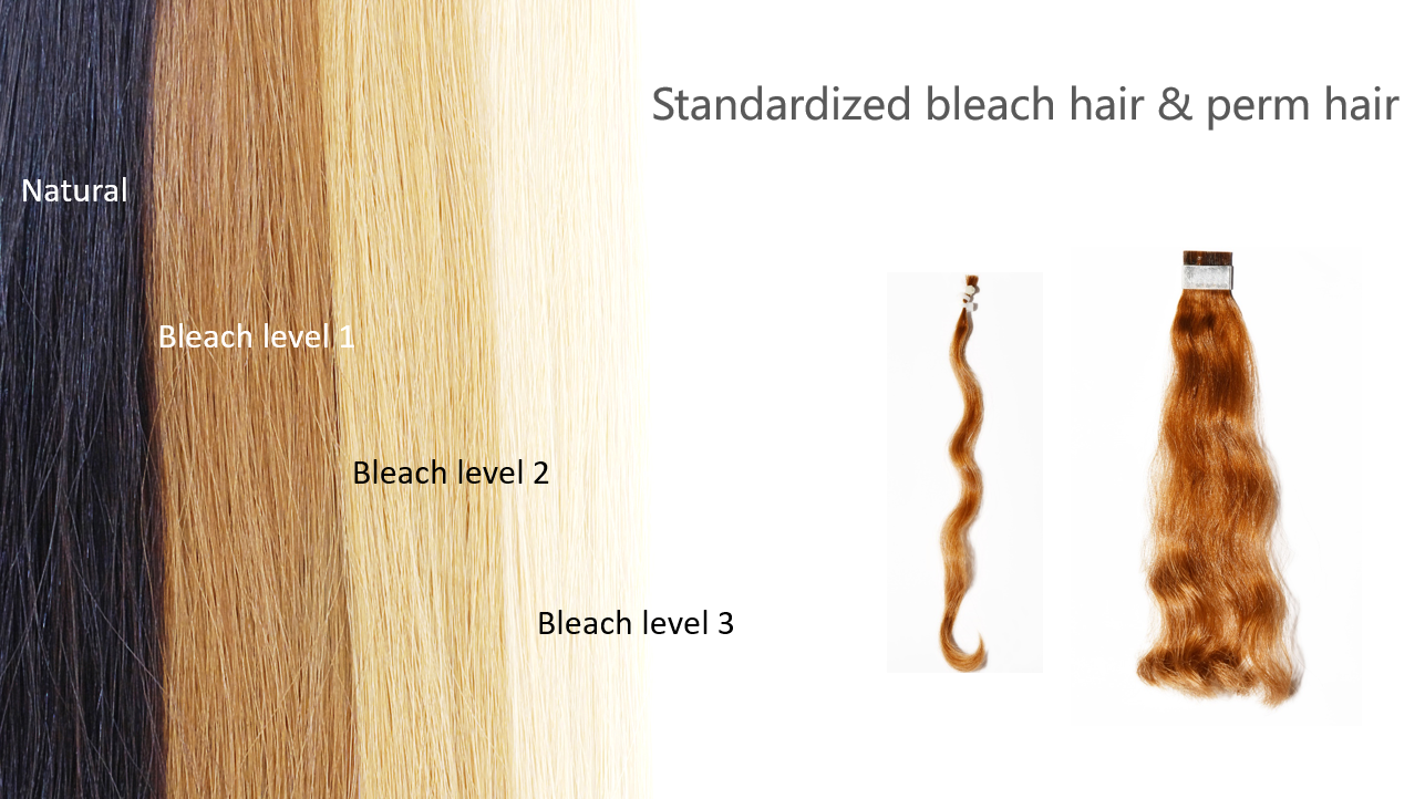 In modern society, more and more consumers get their hair colored or permed. Natural hair swatch is not enough to reflect the real hair situation of consumers. More and more consumers are facing hair problems brought by chemical treatment such as yellowing, hair straw like, hair splite ends, difficult to manage, etc. To solve these problems, more and more hair products are targeting on chemical treated hair. So standardized chemical treated hair swatch is needed to evaluate performance of these kind of hair products. We use standardized process to bleach natural hair into different levels or perm it into different curliness to get standardized chemical treated hair swatch, in order to reflect real comsumers' hair situation.